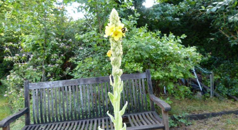 Zo wordt er geleidelijk een hele kaars met knoppen gevormd die in een los patroon openen en lichtgele bloemen geven. Nu is het wel mogelijk om deze toorts-plant een naam te geven. Een hommel vindt dat niet nodig om er honing en stuifmeel te gaan halen. Alle bloemen worden nagekeken en zo bevrucht. Uitgebloeide bloemen verdorren al snel. Tot dan toe is de bloei toch wel geleidelijk van onder naar boven gegaan. Dan is er nog een laatste aanvulling mogelijk in het onderste deel om nog korte zijtakken met bloemen te vormen. Daarna zal de plant verdrogen. Nog sneller dankzij de warme en zeer droge zomer, Omvallen en al de droge zaden uitstrooien voor zover ze al niet door de wind eruit geschud zijn.