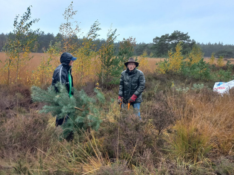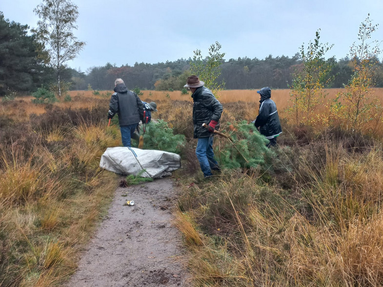 Rond half 11 was er een lekker bakje koffie met koek. Maar wat was het moeilijk om alles droog te houden. De regen viel met bakken uit de lucht. Toch hield men stug vol en om 12 uur was er weer een mooi stukje Malpie van vliegdennen ontdaan met als doel zoveel mogelijk heide te behouden.