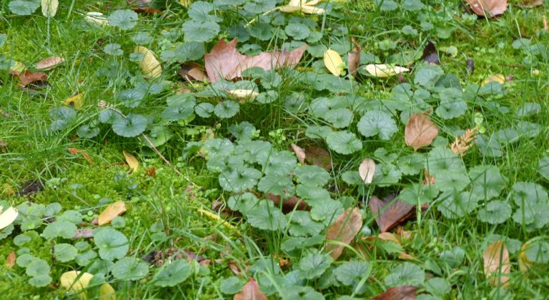 In ieder geval is de huidige toestand het gevolg van een aantal veranderende omstandigheden. Opvallend was dit najaar wel het verschijnen van een flinke hoeveelheid nu nog lage planten met niervormig blad. Geleidelijk ontstonden er concentraties en later waren er ook uitbreidingen in de nabijheid. Die kwamen door de komst van uitlopers vanuit de begincentra met op gezette afstanden (7 cm) telkens een kleine nieuwe plant in wording. Zo is inmiddels er een vrij uitgebreide begroeiing met deze plantensoort gevormd. Daar tussen zijn bovendien nog andersoortige planten in aanleg. Bovendien is er vanuit de omgevende struiken en bomen een restje verspreid valblad achtergebleven dat geleidelijk zal verdwijnen. Zo wordt er een geheel nieuw beeld geschapen met nu nog niet goed duidelijk te herkennen soorten. Het blijft dus voorlopig nieuwsgierig afwachten en niet opruimen en afmaaien.