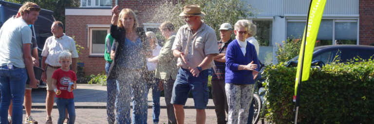 Hier is in september een grasperk omgezet in bloemenweide. Op zaterdag 21 september is er de laatste hand aan gelegd. De bloemen zijn ingezaaid dus om echt van een bloeiend veld te genieten, moeten de bewoners nog geduld oefenen.