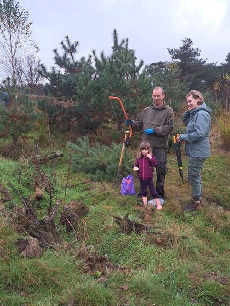 Er waren circa 70 deelnemers waarvan 7 kinderen die zich stortten op de werkzaamheden waarbij onder andere dennen- en berkenboompjes werden verwijderd.
