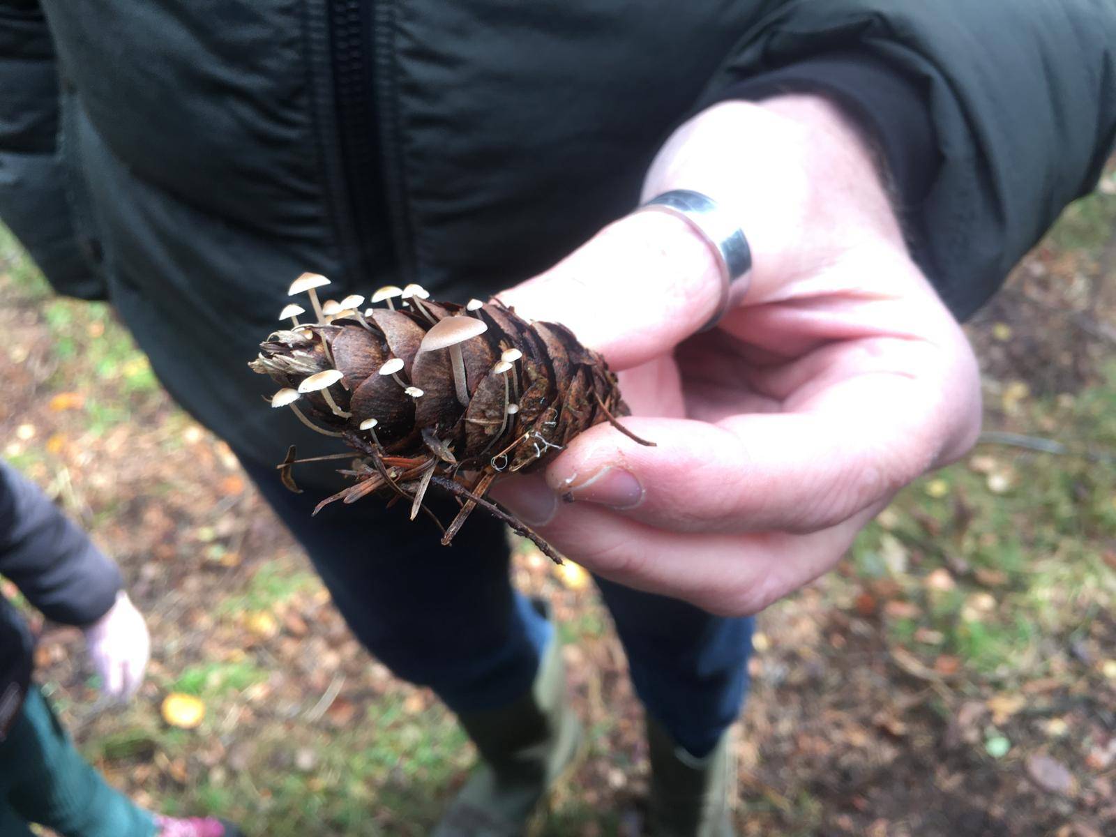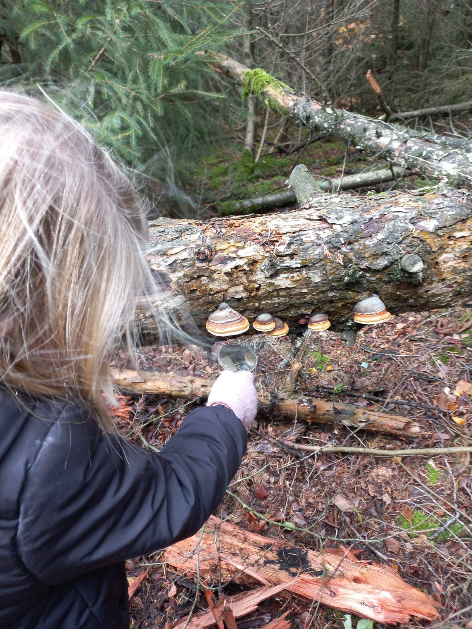 Onderweg kwamen we het huis van kabouter Spillebeen tegen; de vliegenzwam. Anni vertelde hoe die samenwerkt met de berkenboom door voedingstoffen uit te wisselen, maar ook hoe boeren er vroeger vliegen mee tegengingen. De tonderzwam werd ook ooit door mensen gebruikt, maar dan als een aanmaakblokje. Sommige soorten waren lastig te onderscheiden zoals zwavelkopjes en honingzwammen, en eekhoorntjesbrood en kastanjeboleten. Met de spiegeltjes werd de onderkant van de hoed bestudeerd om dit nader te bepalen.