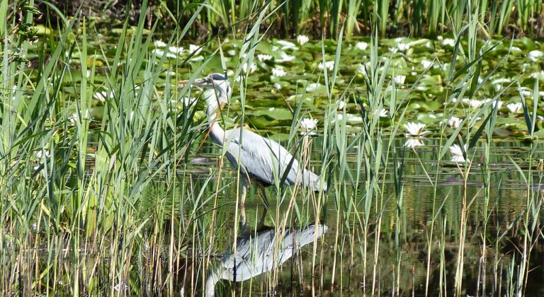 Dat bracht mij in herinnering die keer in de zomertijd dat ik per fiets het bankje bereikt had om vandaar alles wat leeft en groeit in en om het ven te beluisteren en gade te slaan. Toen stond er alleen maar diezelfde blauwe reiger naast een aantal wilde eenden die zich tussen de witte waterlelies vermaakten. Het bladstille wateroppervlak zorgde voor een schitterend spiegelbeeld. Na enige tijd ging de reiger aan de wandel om achter het riet wat te gaan staan kijken. En daar nam de vogel de gedaante van een witte kat aan. Het bezorgde mij het gevoel te hallucineren waarbij ik mij in het oude Egypte waande aan de oevers van de Nijl.