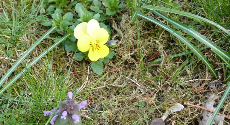 Zo leveren de natuur en ook de semi-natuur soms verrassende verschijnselen op. Hier gaat het dus om een onbedoelde jaarlijkse hergroei van een halfnatuurlijke plant in een monocultuur van gazongras. Achtergebleven zaden van de vioolplanten hebben en behouden blijkbaar zoveel kiemkracht dat ze telkenjare weer voor hergroei zorgen. Het is net als de meizoentjes en paarse dovenetel, het duizendblad en de vogelmuur, het zevenblad en de weegbree die zich weten te handhaven en soms zelfs spectaculair kunnen uitbreiden. Die groeikracht kan onder passende omstandigheden zelfs een invasieve en alles overwoekerende kracht blijken te zijn. Daarvan zijn talrijke voorbeelden te vinden. Neem maar de duizendknoop en de brandnetel, de watergentiaan of de grove den. Het kan grote omvang en invloed bereiken onder bepaalde passende omstandigheden.