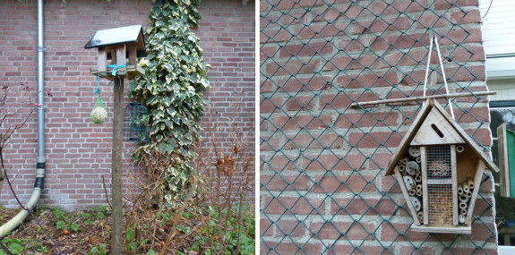 Links: klassiek voederhuis; rechts: geruïneerd insectenhotel