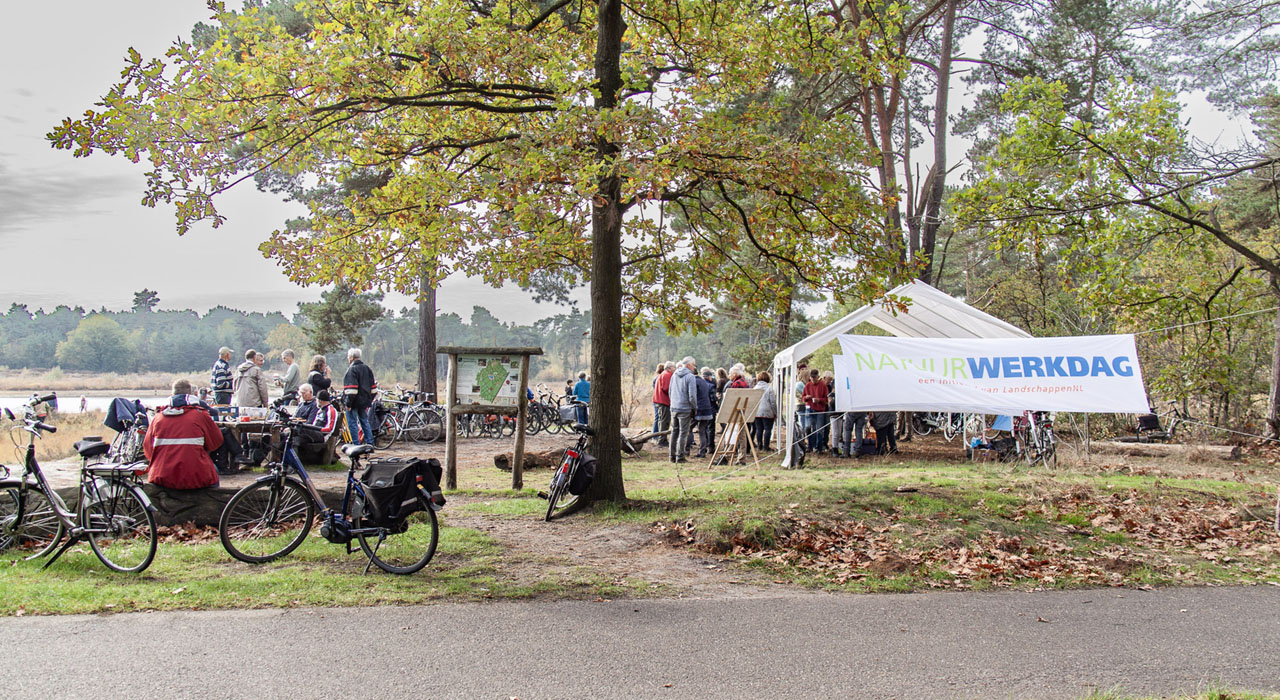 Na een openingswoordje door wethouder Peet van de Loo en Henk de Vrind (voorzitter IVN Natuurwerkgroep Waalre) zijn de deelnemers aan de slag gegaan met het verwijderen van jonge dennen en berken langs de oevers van het ven. Deze ingreep is nodig om te voorkomen dat het hele gebied dichtgroeit, de biodiversiteit wordt aangetast en het waterpeil nog verder onder druk komt te staan.