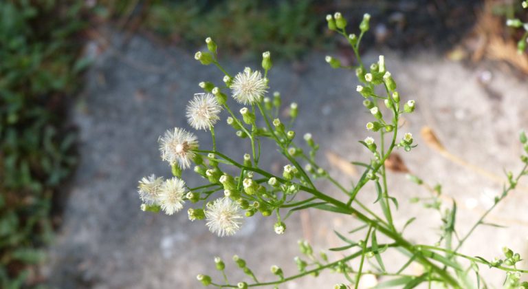 Een bij velen wel bekend onkruid in de zomermaanden is een meestal slanke vrij lichtgroene verschijning. Soms onderaan vertakt in een aantal rechte stengels en soms zelfs wat bossig geworden meestal door beschadigingen tijdens de groei naar volwassenheid. Op de top van de stengels ontstaan kleine witachtige bloempjes. Bij nader bekijken blijken het typische Samengestelde Bloemen (Composieten) te zijn. Eigenlijk bloemkorfjes bestaande uit een korfje van een ring groene omwindselblaadjes. Daarbinnen in dit geval een buitenring van grijswitte of iets rose straalbloemen en centraal iets gele schijfbloemen. Die bloemkorfjes staan op de top van een ruim vertakte lange pluim. Die vertakkingen hebben aan de voet een smal langwerpig steunblad. De centrale plantenstengel is niet behaard en kan flink verschillend van lengte worden. Zo is er het koppel Wat en Halfwat gegroeid op een zandige droge plek. De ene meer dan een meter lang en de andere aan de basis in vijf delen vertakt en half zo lang gegroeid.