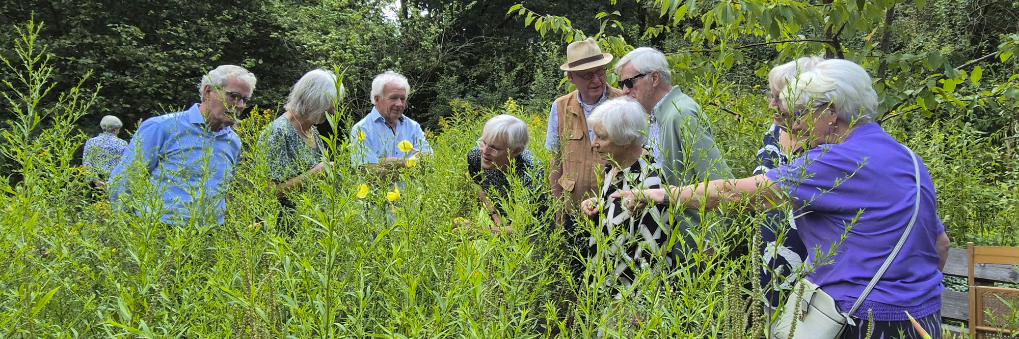 Onze afdeling onderhoudt drie natuurtuinen. Ook bij andere IVN-afdelingen hoort regelmatig een tuin. Dan is het best leuk en interessant om onderling ervaringen uit te wisselen. Zo kwam op 3 juni een delegatie van IVN Meerssen op bezoek, om inspiratie op te doen bij Vlindertuin Waalre.