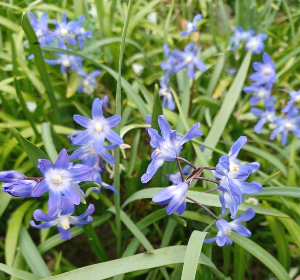 Na de sneeuwklokjes en winterakonieten, de uitbundige witte en gele golf, die bij ons het lentegevoel aankondigt, volgt nu begin april de blauw/roze golf. Kortom een zee van blauwe en roze tinten geven de Commelinhof een kleurrijk lentekleed.