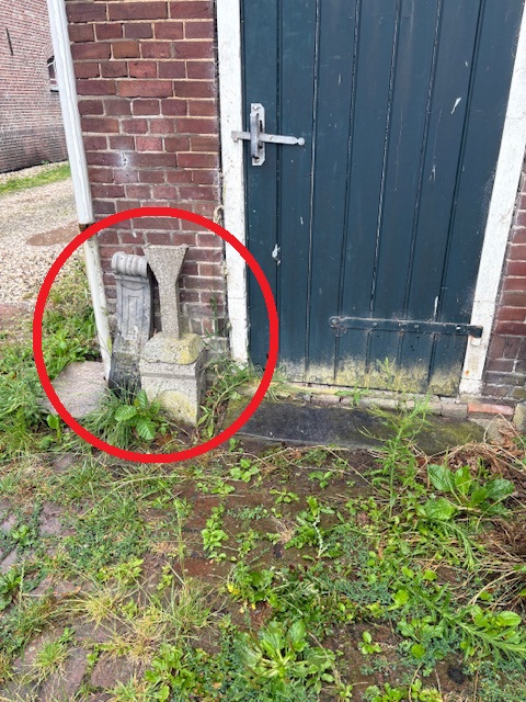 Stadsnatuur wist uiteraard ook fossielen te spotten, een kunst op zich. Bij de schuurdeur met de dorpel van natuursteen. Op de rechterfoto 2 solitaire bekervormige koralen bij de schuur.