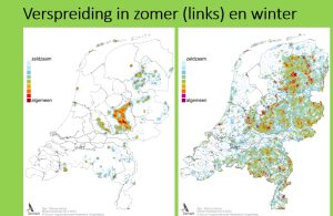 Bij de lezing kwamen 20 vogels voorbij (bij wijze van spreken), met de belangrijkste kenmerken en de Latijnse namen. Waaronder de Fringilla coelebs en dat is uiteraard de Vink (wie weet dat nou niet). Nieuw was dat bij elke vogel de verspreiding in de zomer én in de winter op een kaart werd getoond, wat af en toe verassende inzichten opleverde, zoals de grote verschillen tussen de verspreiding in de de zomer en de winter en de verschillen in de verspreiding tussen de vogels onderling.