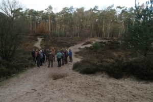 In het gebied Lage Vuursche kregen we uitleg van Marijke van Noort van KNNV, Rigo Faase, gids van Lage Vuursche en Peter van Wieringen, één van onze eigen IVN gidsen. Piet van Dijk van IVN Eemland was wel bij de lezing aanwezig maar niet bij de excursie. Leuk was dat Lage Vuursche een heel ander en afwisselend gebied is vergeleken met het veenlandschap van Vecht en Plassen. Op de foto’s is dat goed te zien.