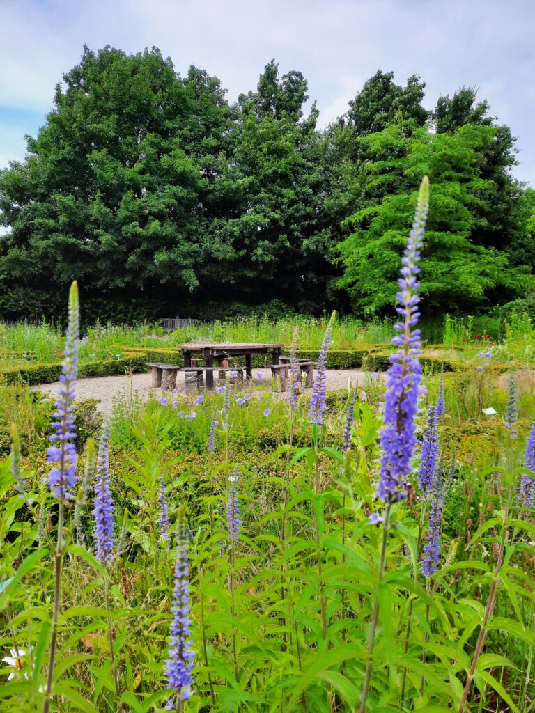 Omgeven door een bossingel vindt u onder andere: Een (cirkelvormige kruidentuin) kruidenwiel met meer dan 100 geëtiketteerde keukenkruiden en geneeskrachtige kruiden, een vlindertuin, een stenen wal met rotsplanten, educatieve percelen met (oude) traditionele landbouwgewassen.