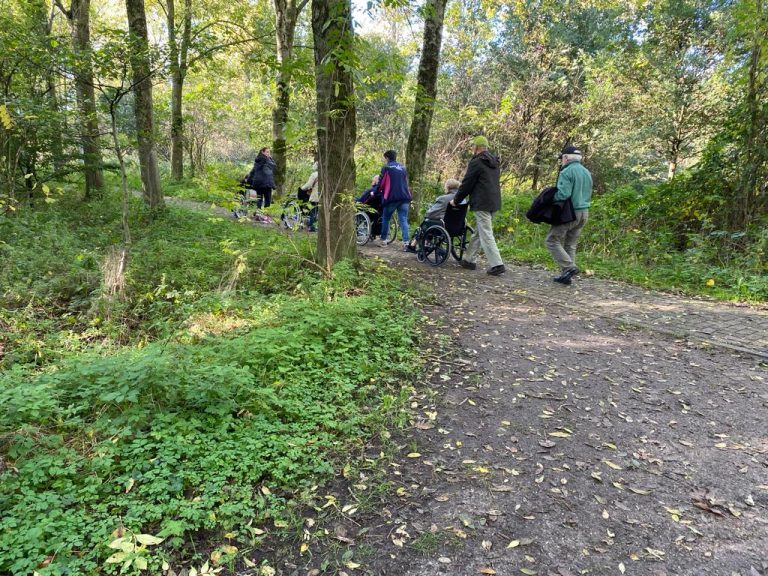 Op dinsdagmiddag verzamelen we op de Donk, drinken met de cliënten een kopje koffie en gaan daarna wandelen in het Geerbos of naar de natuurtuin.