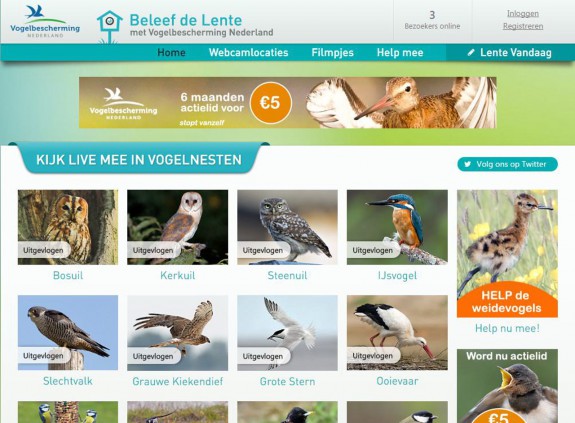 Beleef de Lente, een website van Vogelbescherming, laat clips zien van opgenomen livestreams. Vogelbescherming Nederland is blij dat Beleef de Lente weer honderdduizenden unieke bezoekers heeft getrokken. Volgend jaar start weer een nieuw seizoen van Beleef de Lente met livestreams!