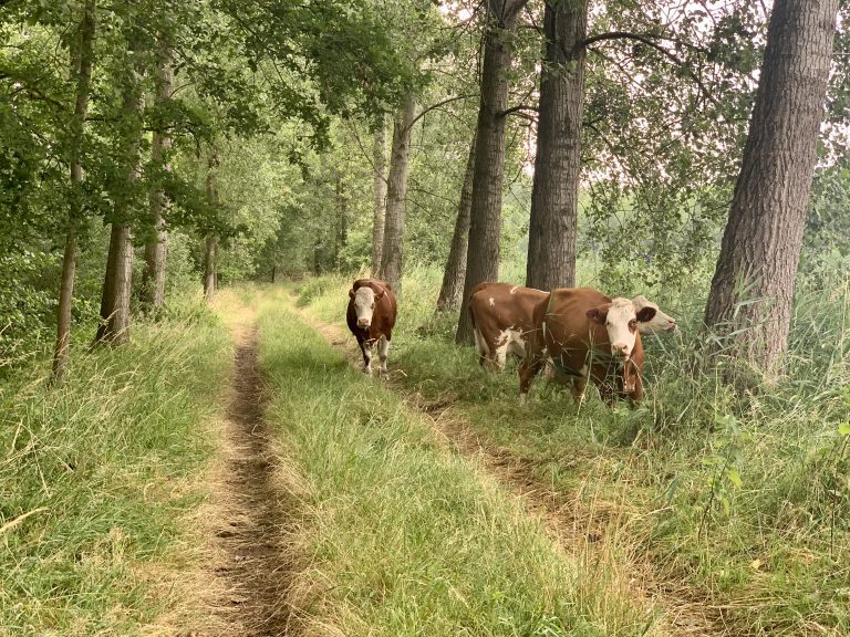 Doorwandelend passeer je een verharde weg en zie je het verschil tussen natuurgrasland en intensief gebruikte weide. Vervolgens kom je opnieuw door het natte leembos. Het pad is weinig belopen, wat het extra aantrekkelijk maakt. En wat opvalt is dat het hier zo stil is, een onbekende hoek van het Groene Woud ver van wegen. Je kruist de verharde weg nogmaals en het laatste deel van de wandeling is weer door het bos. De oplettende wandelaar merkt dat hier stukken bos liggen op grond met weinig leem. Het pad is niet glibberig en je ziet een ander soort bos met o.a. douglassparren.