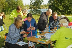 Op zaterdag 7 oktober vierden we het tweede lustrum sinds de fusie van IVN Veldhoven-Vessem (opgericht in 1982) en IVN Eindhoven (opgericht in 1966). Plaats van handeling was Park Meerland, op de grens van Eindhoven en Veldhoven. De jubileumcommissie (Etje, Claudia en Jannie) had een wat afwijkend programma bedacht, waarbij de deelnemers aangezet werden om zelf aan de slag te gaan met het ontdekken van de lokale natuur. Maar tussendoor was er ook volop gelegenheid om andere leden te leren kennen, herinneringen op te halen met oude bekenden onder het genot van koffie, thee, fruitsap en zelfgebakken koek.