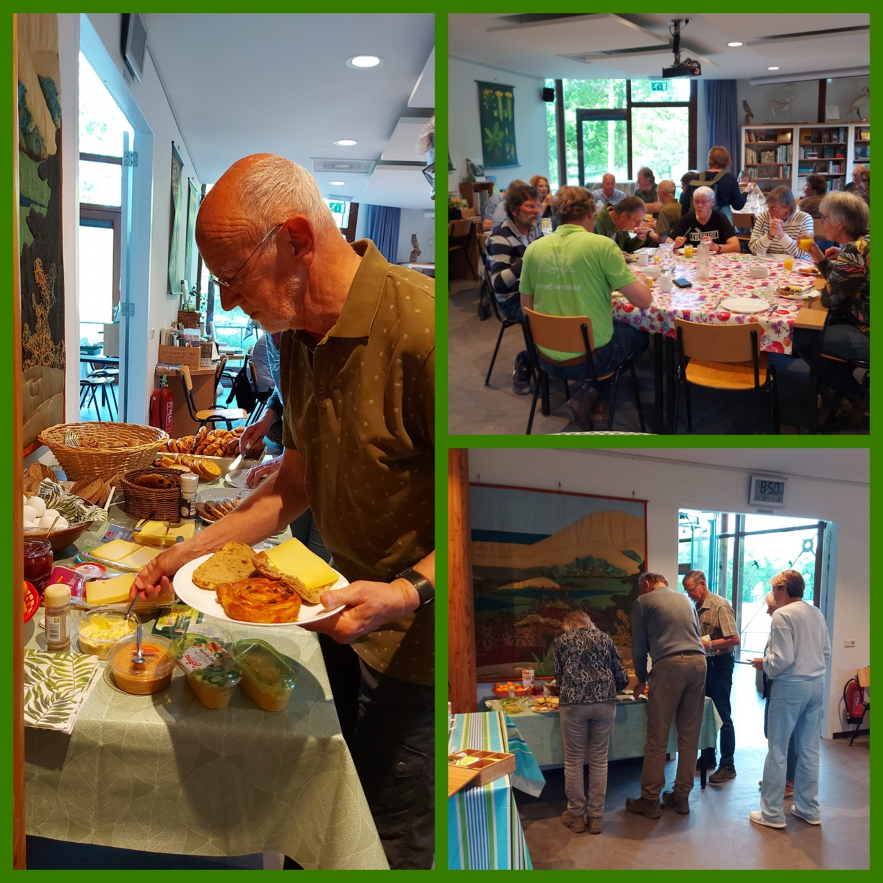 Bij terugkomst zocht iedereen een plekje aan de gedekte tafels en werd genoten van een lekker ontbijt. Erik verraste Janny Silvius met een mooi cadeau; zij was de gelukkige winnares van de puzzel uit de Jubileumkrant. Proficiat Janny!