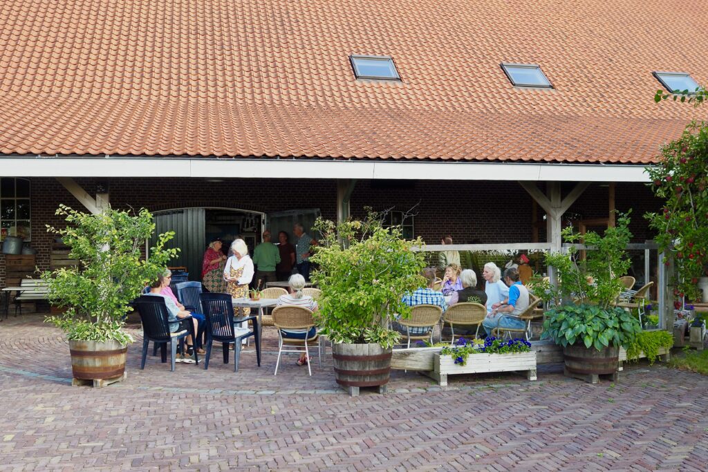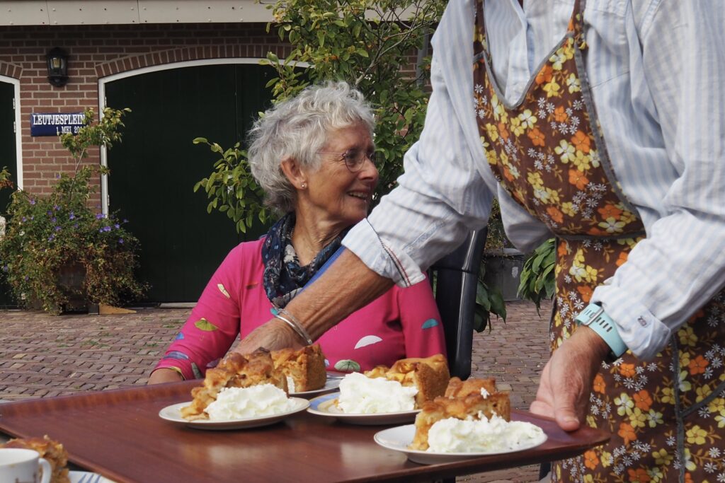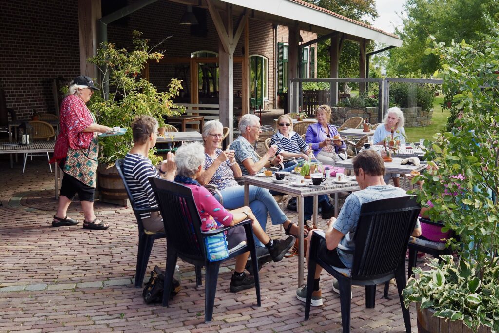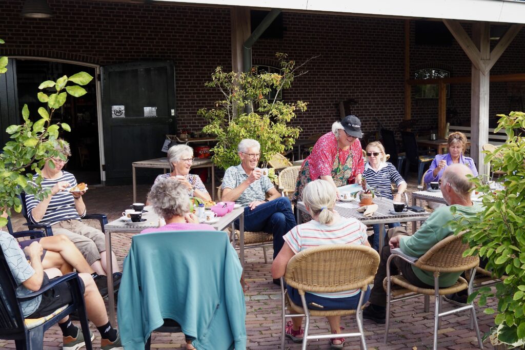 Na ruim twee uur fietsen lokte het eindpunt aan de Lodderlandsedijk 24 te Rockanje. Op het fraaie terras van uitspanning/museum De Koffieleut werd nog een uurtje de ervaring verteerd met koffie en een heerlijke appeltaart.