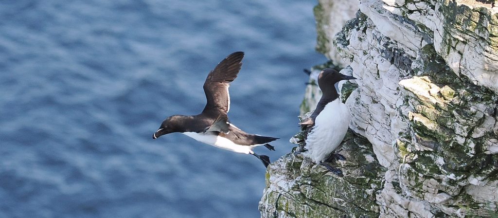 Overweeg voor volgend jaar een trip naar de Engelse of Schotse kust om deze fraaie vogels in prachtkleed te zien baltsen en broeden. Of makkelijker nog: pak nu de auto en rijd naar naar de monding van de Maas om daar onder aan de zeewering de Alken en de Zeekoeten te zien foerageren. Geen garantie, maar wel kans op succes. Om een buitenlandse trip aan te moedigen nog een paar prentjes uit het broedgebied in Schotland.