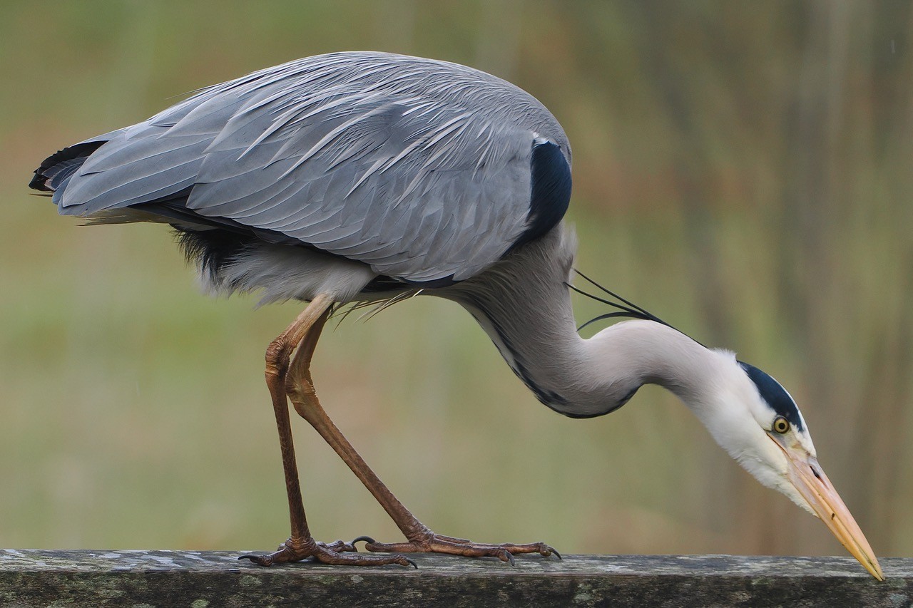 Voldaan met een paar prentjes op zak kwam ik bij de vlonder van de Tenellaplas mijn vriend de Blauwe reiger tegen. Lijkt wel ingehuurd door het ZHL om de bezoekers te vermaken, iedere week wordt het beest tammer en de “wegvliegafstand” kleiner. Twee meter is het momenteel, minder moet het niet worden. Ik heb tenslotte ook mijn grenzen! Staande op het hek bedelde hij welhaast om gefotografeerd te worden. Dit betekende een flink aantal stappen achteruitlopen vanwege de telelens op de camera. Het lukte net om hem “er op te krijgen” staande op het hekje. Omgekeerde wereld, “te nabij” waar de praktijk bijna altijd “te ver af” is. Maar wat een beauty, net bekomen van de exotische kleuren van de Pestvogel nu overdonderd door de strakke lijnen en orthodox sobere kleuren van deze visser. In een houding die we kennen van oude vogelgravures maar dan wel met een modieus “Jorrit Bergsma matje” in de nek! Goed gedaan ZHL, twee hele mooie vogelsoorten bij het bezoekerscentrum. Zeldzaam en gewoon, uitbundig en sober. Ga kijken en vergeet vooral de reiger niet, die is zeker aanwezig en dat is geen schrale troost.