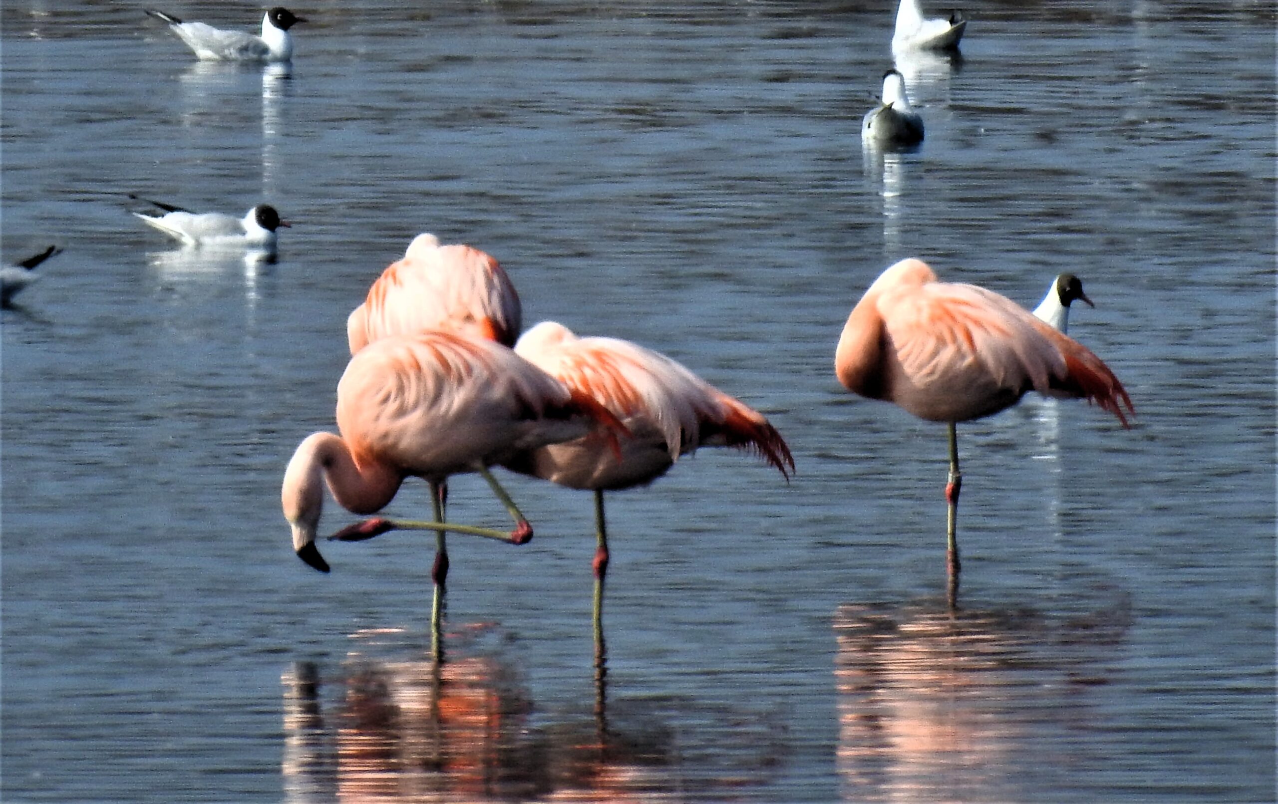 Ze leven in kolonies en vanaf september tot april zijn er zo rond de 70 stuks Chileense en Europese flamingo’s te vinden in het Grevelingenmeer (zout water) bij Battenoord op Goeree-Overflakkee. Ze overwinteren hier al meer dan 40 jaar. Hoe mooi is dat!