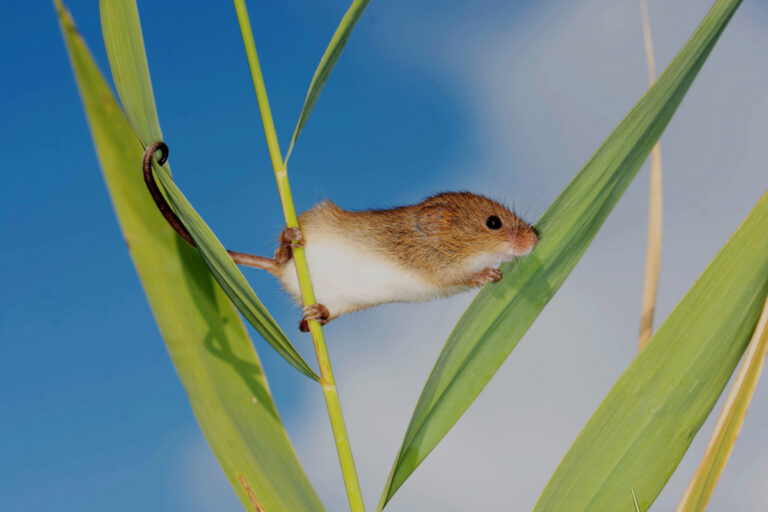 De dwergmuis is het kleinste knaagdiertje van Europa. Dit schattige geel tot oranjebruine muisje met witte buik is echt een beestje om verliefd op te worden. Hij leeft voornamelijk in gebieden met hoge grassen, zoals rietvelden, graanakkers, grasvelden met hoge grassprieten en moerassen. Hier leeft hij klimmend tussen de stengels terwijl hij zich vastgrijpt met de achterpoten en zijn grijpstaart. Hij is het enige in Europa voorkomende zoogdier met zo’n grijpstaart. Zo heeft hij altijd een voorpootje vrij om voedsel te zoeken tijdens het klauteren in halmen. Aan zijn lange en beweeglijke staart zit een wit pluimpje, dat afslijt naarmate hij ouder wordt.