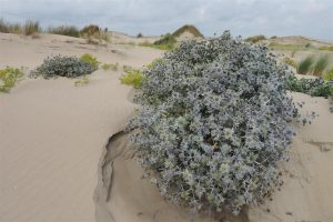 Het zoute milieu dicteert het overgrote deel van de begroeiing. Zouttolerante planten zoals Zulte, Lamsoor, Zeekraal , Melkkruid, Schorrekruid bevolken het gors. Iets hoger treffen we Spiesmelde, Zeeraket en Zeewolfsmelk aan. Duindoorn overwoekert de duinrand. Op de embryonale duintjes in het zuiden vinden we Biestarwegras en Helm. Hier gaat de ontwikkeling snel en is het aantal soorten aan het toenemen. Zeedistel neemt een ontwikkelend duin op het strand aan de leizijde volledig in beslag met een van de mooiste veldjes van de omgeving.
