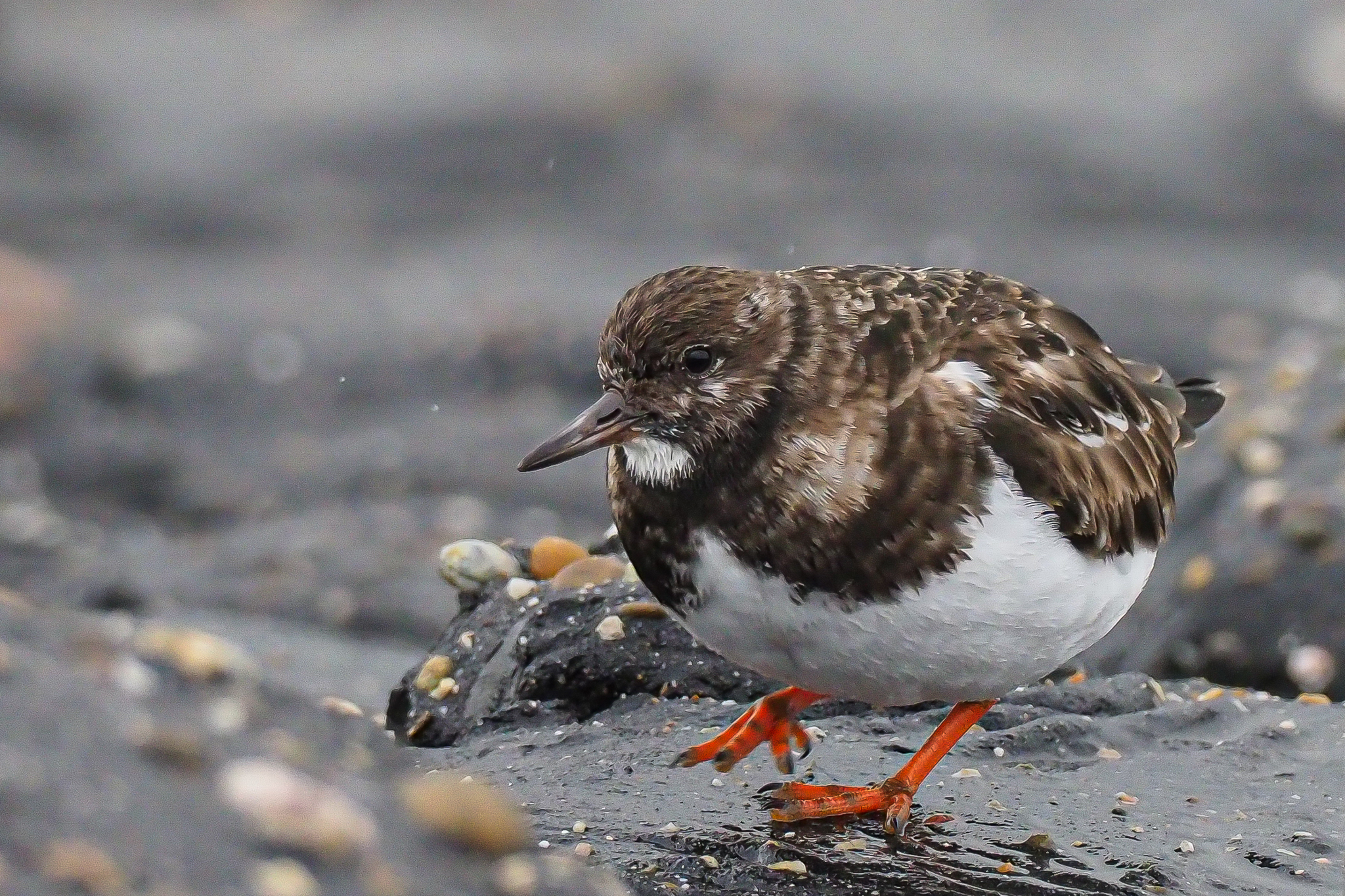 Maar dit verschil is niet representatief: het is juist een vogel die zich goed laat zien en ondanks de grauwe dekveren opvallende kleuren heeft. Even later had ik hem te pakken in de complete winteruitdossing. Met witte borst en oranje poten een kustvogel die juist opvalt in deze donkere maanden. Ook niet schuw en goed benaderbaar. Niet massaal overwinterend in ons land, maar op de juiste plaatsen makkelijk te vinden. Aan onze “rotskusten” steevast te zien en dat maakt hem tot een “goede instapvogel” voor als je in de wintermaanden het kleine kustgrut wilt leren kennen. Wat de Drieteenstrandloper is voor de vloedlijn, is de Steenloper voor de kustwering, strekdammetjes en schelpen strandjes.