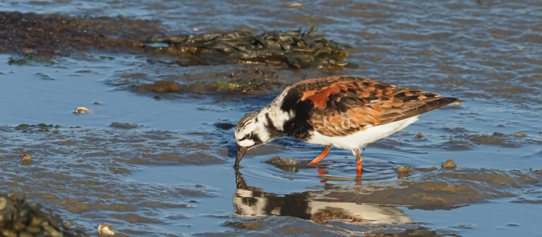 Maar dit verschil is niet representatief: het is juist een vogel die zich goed laat zien en ondanks de grauwe dekveren opvallende kleuren heeft. Even later had ik hem te pakken in de complete winteruitdossing. Met witte borst en oranje poten een kustvogel die juist opvalt in deze donkere maanden. Ook niet schuw en goed benaderbaar. Niet massaal overwinterend in ons land, maar op de juiste plaatsen makkelijk te vinden. Aan onze “rotskusten” steevast te zien en dat maakt hem tot een “goede instapvogel” voor als je in de wintermaanden het kleine kustgrut wilt leren kennen. Wat de Drieteenstrandloper is voor de vloedlijn, is de Steenloper voor de kustwering, strekdammetjes en schelpen strandjes.
