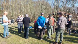 Jan Alewijn Dijkhuizen gaf een korte uitleg over het gebied, de bedoeling van het snoeien en een toelichting over het te gebruiken snoeimateriaal.