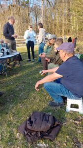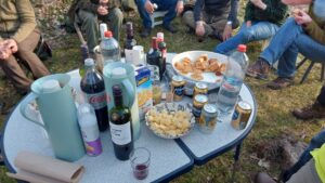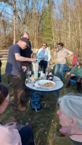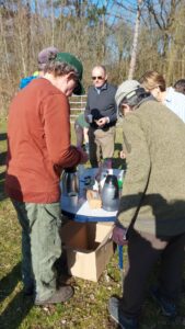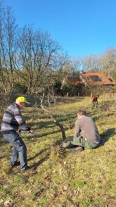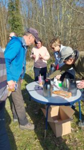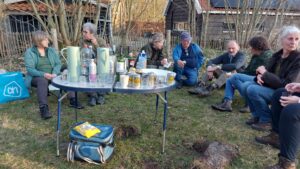 In de pauze was er koffie en thee met wat lekkers. Aan het einde van de middag, toen de zon nog steeds heerlijk scheen en al het snoeimateriaal was opgeruimd, was er tijd voor een welverdiende borrel, waar goed gebruik van werd gemaakt.