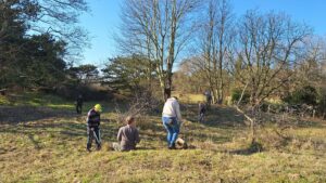 De deelnemers gingen enthousiast aan de slag met het verwijderen van allerlei opschot, waardoor het gebied later eenvoudiger te bewerken is met een grote maaier.