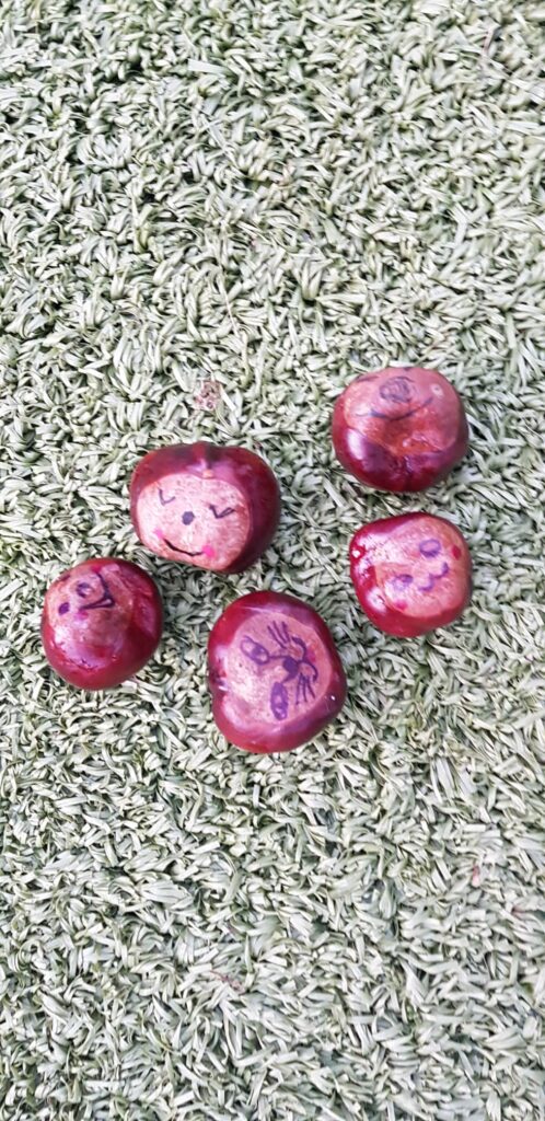 aantal kastanjes om her en der in het park te verspreiden in de hoop dat er in het park Wilde kastanjebomen gaan groeien. Al snel haakte een oma met kleinkind af, maar verder is iedereen de hele wandeling bij ons gebleven.