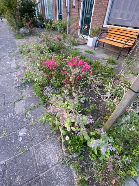 Tijdens de rondleiding van anderhalf uur keken we ook naar mooie oude bomen, plantsoenen en stadstuintjes in pot. Tony wees ons onderweg een paar keer op tuinen die wat minder strak en netjes waren, doordat de eigenaars de natuurlijk opkomende planten laten staan. Vaak worden wilde planten in de stad en tuin benoemd als onkruid en als slordig, dus was het verheugend om de deelnemers aan de wandeling dingen tegen tegen elkaar te horen zeggen als: “je mag je tuin en erfgrens dus best wat rommeliger laten. Ik ga dit ook tegen anderen vertellen!”