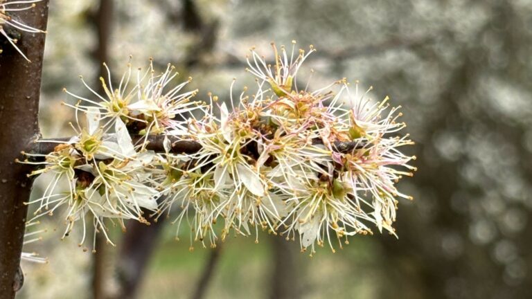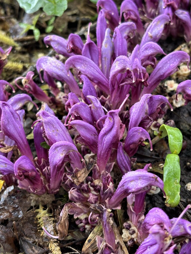 De Paarse schubwortel, die op verschillende plaatsen in het park de kop op steekt, verraadt dat de sapstroom bij de bomen weer goed op gang komt.Ook het uitbotten van de knoppen aan de bomen, de bloeiende Sleedoorn en het Speenkruid kondigen het voorjaar aan.