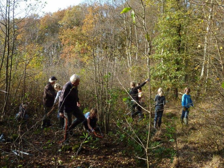 Landschapsbeheer Drenthe voorziet de groep van materialen die nodig zijn. De kinderen fietsen naar het Holtveen en daar staan de IVN-leden voor begeleiding op hun te wachten. De groep wordt in tweeën gesplitst en de groep gaat hard aan het werk met zagen en knippen en de andere groep gaat op natuurbelevingstocht. Halverwege de middag wordt er gewisseld.