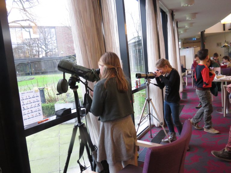 Activiteiten rond de jaarlijkse tuinvogeltelling samen met leerlingen van diverse scholen en bewoners van Vughterstede.