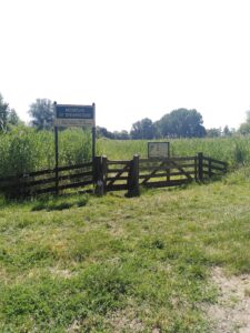 Ingang: Toegangshek is een hoog klaphek dat vanzelf dichtvalt en daardoor niet makkelijk te openen is.