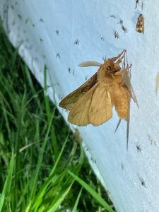 Naarmate het langer donker was kwamen er meer vlinders op het doek. Veel aanwezigen hielpen met apps op hun telefoon om de soorten op naam te brengen. Het hoogtepunt vormde de rietvink, een vrij grote nachtvlinder met warme oranjebruine kleuren, die vanaf 23.00 uur verscheen. Uiteindelijk vertrokken tegen middernacht de laatste deelnemers moe maar zeer voldaan naar huis.