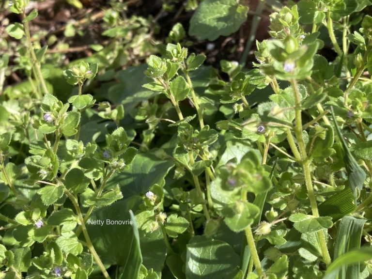 Eerste helft april liepen we met twee kleine kinderen een rondje in het plantsoen van het stadje Buren. De zon scheen, het was rustig, de vogels floten en het fluitenkruid bloeide net. Toen ik bukte om iets op te rapen, viel mijn oog op een aantal onooglijke lila-blauwe bloempjes. Een ereprijs, maar welke? Het bleek een klimpopereprijs (Veronica hederifolia) te zijn, een algemeen voorkomende soort die ik tot nu toe over het hoofd had gezien.