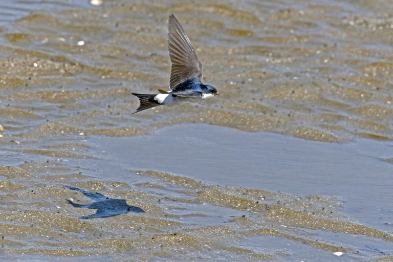 In de in 2017 aangelegde betonnen wand zijn 108 gaten gevuld met speciaal zand. Achter een opening graaft de oeverzwaluw een gang (kan wel een meter diep zijn) en er wordt aan het einde het nest gemaakt. De zwaluwen vliegen af en aan. Een hele luchtshow, recht voor je neus. Een verrekijker heb je niet nodig, ze vliegen links en rechts om je oren.’’