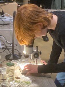 Vrijwilligers van IVN Westerkwartier en Het Groninger Landschap staan klaar met 7 microscopen, waarvan 2 met groot scherm. Je kunt die microscopen zelf bedienen met een beetje hulp van ons.