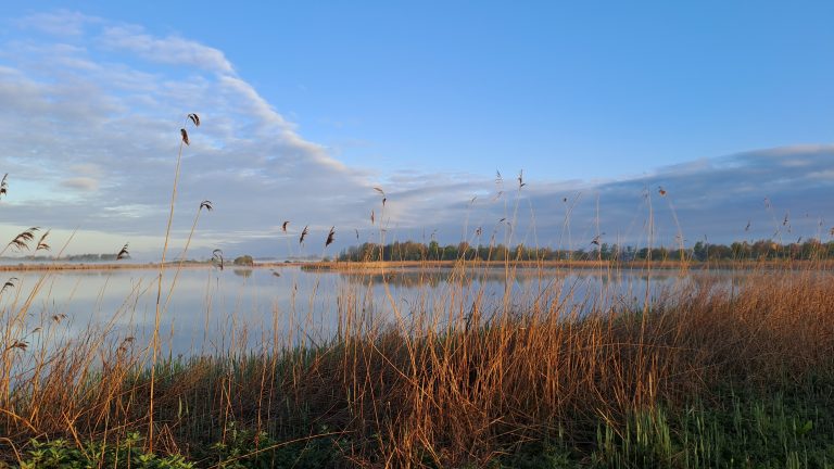 Vandaar steken we over naar het open weidegebied aan de Drentse kant van het Leekster Hoofddiep.