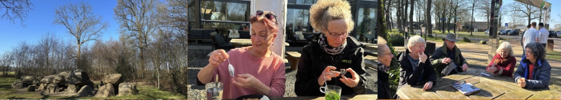 Deze wandeling voor Gidsen voor gidsen ging door het dorp Diever. Er werden veel leuke en interessante weetjes verteld. Als gidsen onderling vulden we elkaar soms ook aan, want de een wist nog iets meer over een plant of dier te vertellen en de ander over de historie. Bij het Oermuseum liepen we een momentje naar binnen. De combinatie van dorp en de wandeling eromheen, waarbij we nog flink wat meters maakten door het bos, zorgden voor een mooie afwisseling. Na de excursie namen we op het terras koffie met wat lekkers bij Brasserie Puur. In het zonnetje namen we de voors en tegens van een dergelijke dorpsexcursie door. Het lijkt een toevoeging van ons excursie-aanbod te zijn en in oktober doet Nel ook een dergelijke Gidsen voor Gidsen wandeling, maar dan door Vledder.