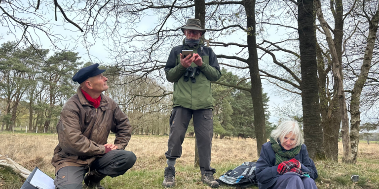Onderweg gingen we onder begeleiding van Theo en in stilte aan de slag. Hoe kun je door middel van taal, in vrije dichtvorm, schrijven wat je raakt in de natuur. Dat kan intens zijn, vrolijk, luchtig, simpel of diepgaand. Met een speelse werkvorm schreven we wat er in ons opkwam. Associatief met woorden, natuur en uit eigen beleving. De uitkomst was verrassend en de deelnemers vonden dat dit ook als publieksexcursie gedaan kan worden. Het is een totaal andere insteek van de natuur ervaren en ook dat kan een plek hebben binnen IVN.