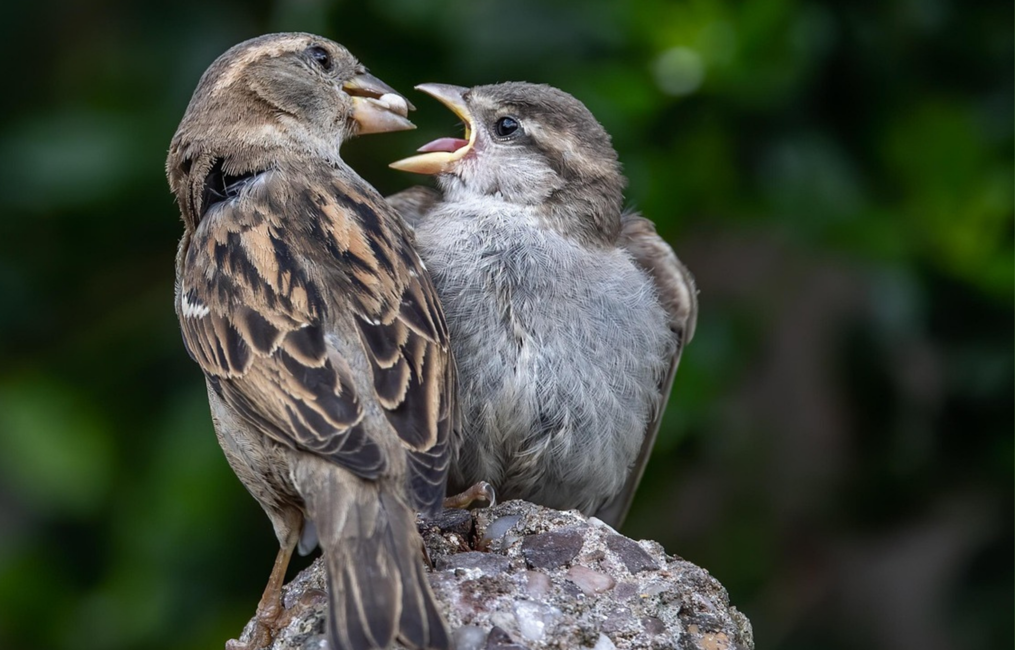 Als je verschillende vogels met witte vlekken of niet goed doorgegroeide vleugels ziet dan is de voedselsituatie slecht. Wat bevordert de voedselsituatie? Inheemse beplanting vormt de basis, niet alleen als ze groen zijn, maar ook in herfst én winter! Uitgebloeide planten niet opruimen maar aren met zaden laten staan. Ook (stekel)planten als braam, brandnetel en klimop heel belangrijk. Bijvoeren kan het hele jaar met biologisch kippenvoer; ‘s winters met wat vet in de buurt zoals pindakaas. Ook meelwormen lusten ze graag. Huismussen zoeken altijd dekking tegen bijv. sperwers, dus voederplaatsen verdekt opstellen. Waar kippen zijn, zijn mussen, dus als je mussen wilt trekken wordt het gaan houden van kippen sterk aanbevolen.