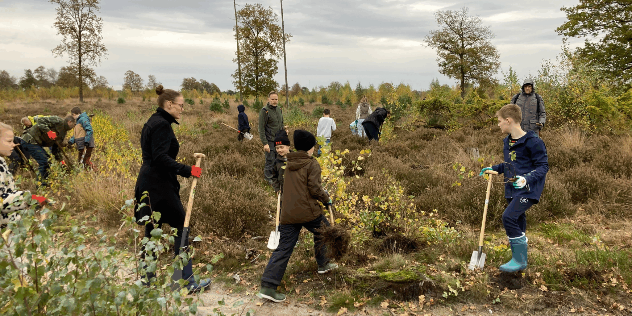 De Kale Duinen is in beheer bij Staatsbosbeheer en er werd deze dag samengewerkt met IVN Westerveld. Ook de Junior Rangers en de Junior Kids hielpen mee. Tijdens de ontvangst en een korte uitleg van de dag bij grote tent, ging iedereen flink aan de slag. Er werd druk gespit. Er waren veel spades aanwezig, zelfs voor de kinderen was er een verkorte versie van de spade. Goede boompjes met wortel werden meegenomen naar huis. Daar krijgen ze een mooie plek, onder andere in een nog aan te leggen voedselbos en bij een terrein van een particulier.