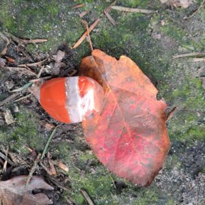 We zochten naar diersporen, we mochten een halfedelsteentje uit een ‘schatkistje’ pakken met de opdracht de kleuren te bestuderen en díe kleuren te zoeken in de natuur.