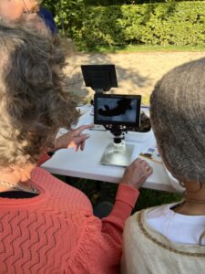 Het buitencentrum van de gemeente Den Haag ‘School in Bos’ kent een rijke geschiedenis en vierde haar 50-jarig bestaan met twee open dagen. Zowel in het Zuiderpark in Den Haag als in Wilhelminaoord. De dagen stonden in het teken van beleven, herinneren en vieren. Iedereen was welkom. De IVN was aanwezig met een stand met activiteiten voor de kinderen. En alles zat mee. Prachtig weer, geweldige organisatie, leuke mensen. Er was veel belangstelling voor de IVN Westerveld tafel die vol materiaal lag. Zo kon je met eigen ogen kleine beestjes zien en onze prachtige microscopen maakten van ieder spinnetje een grote ontdekking.